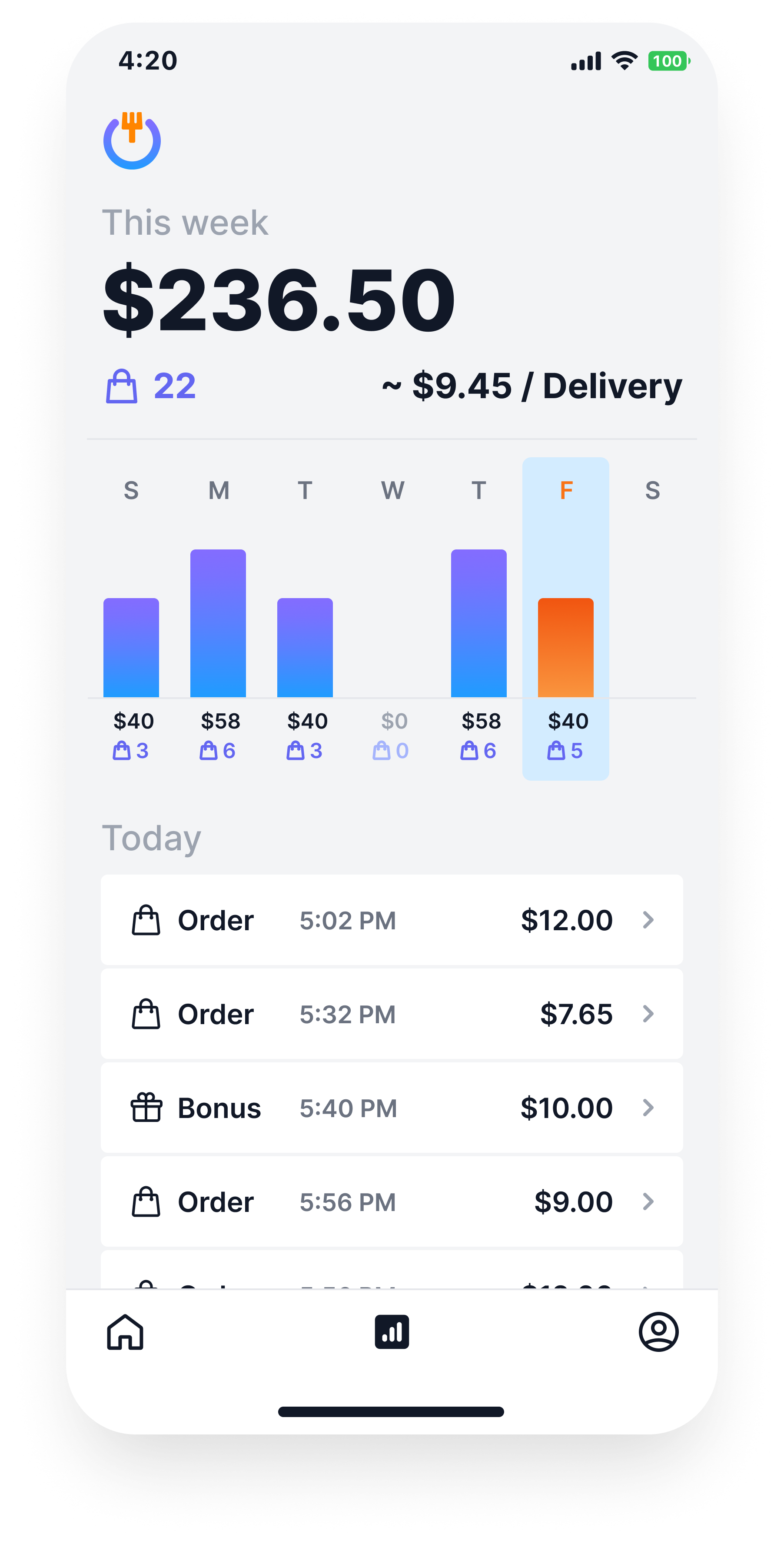 Visualize earnings and store metrics that allow the driver to make the best decisions for financial success.