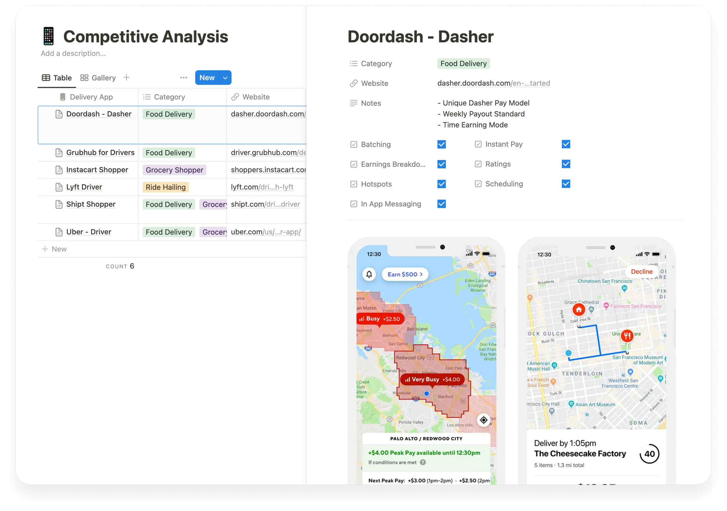 A competitive analysis revealed how the different delivery apps addressed driver needs and challenges, and highlighted areas where I could make our product stand out and improve. By examining other user interfaces, flows, and overall experiences, I learned a lot about what kind of features and capabilities exists in the space and why. This understanding allowed me to design a more intuitive and friendly experience that not only met but exceeded user expectations - differentiating the product in a crowded market.