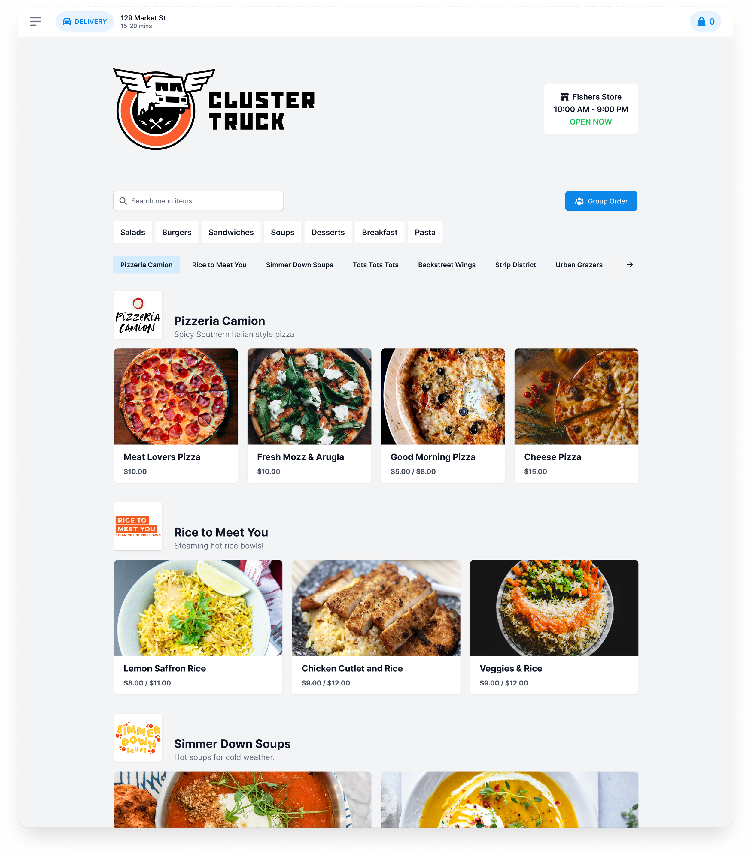 The online ordering experience includes both web and mobile, as well as a native app. Some features include full ordering experience, group ordering (single pay and group pay), checkout, order tracking, delivery/pick up, issue reporting, account settings/order history, emails and receipts, and more.