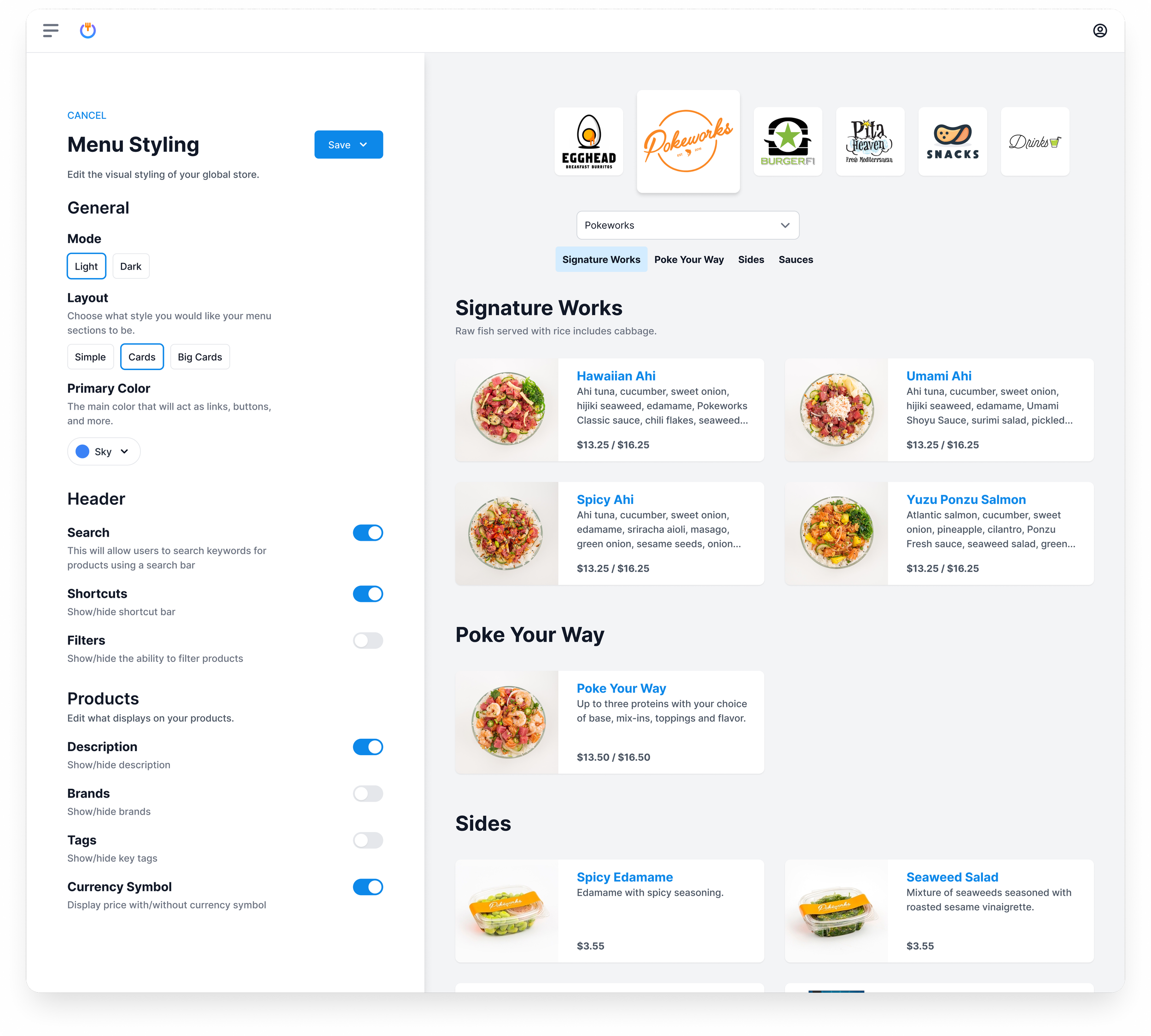 The challenge with our menu builder was to enable wide flexibility but maintain core consistent concepts. Building a menu can be complex, but by utilizing simple and widely used UI concepts, building any kind of menu becomes easy and incremental.